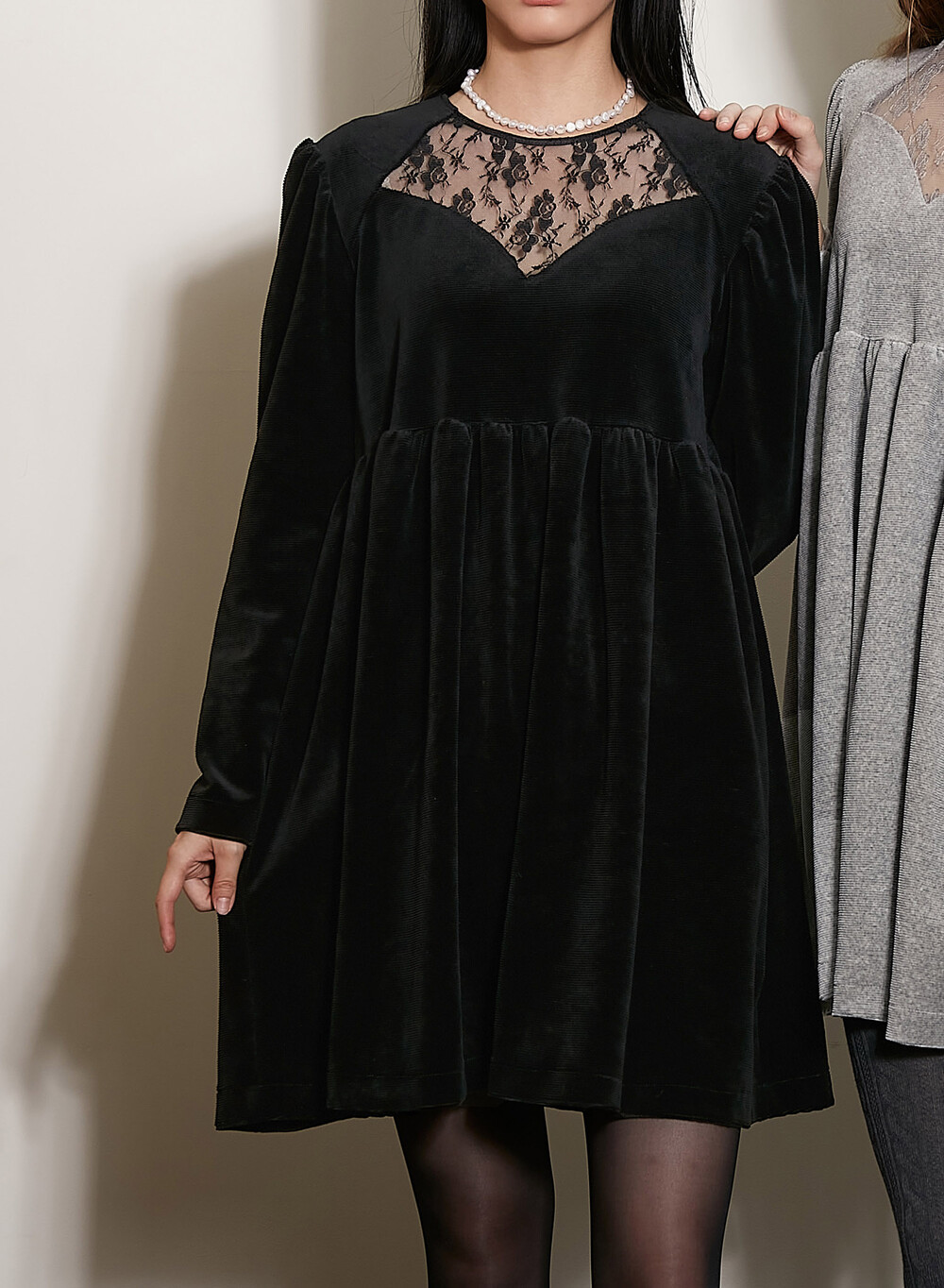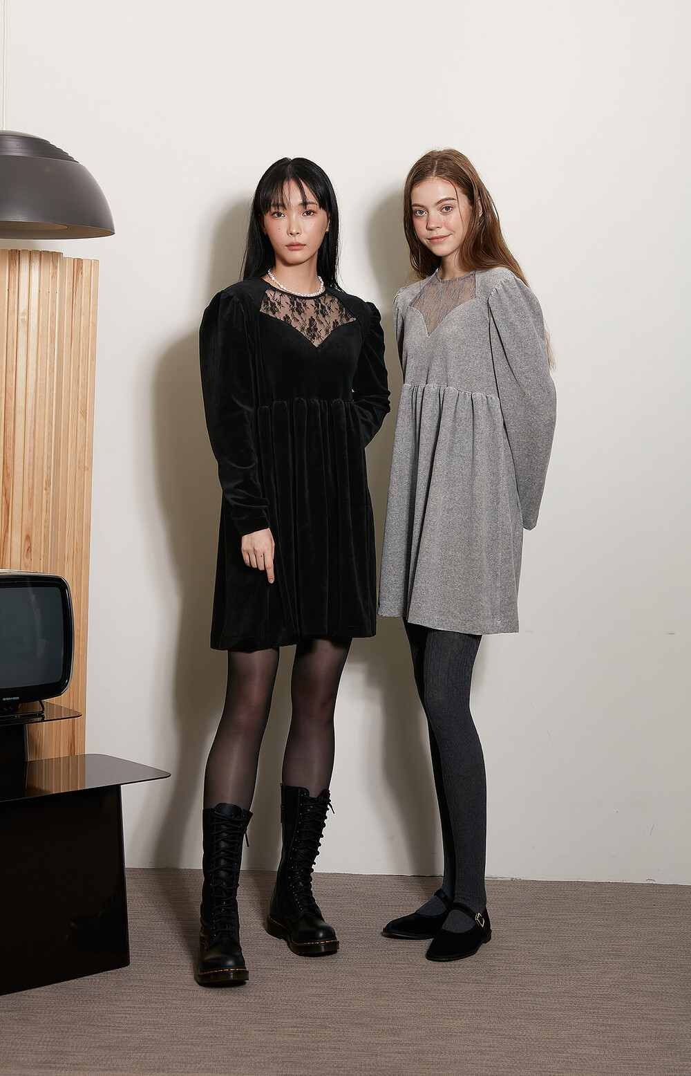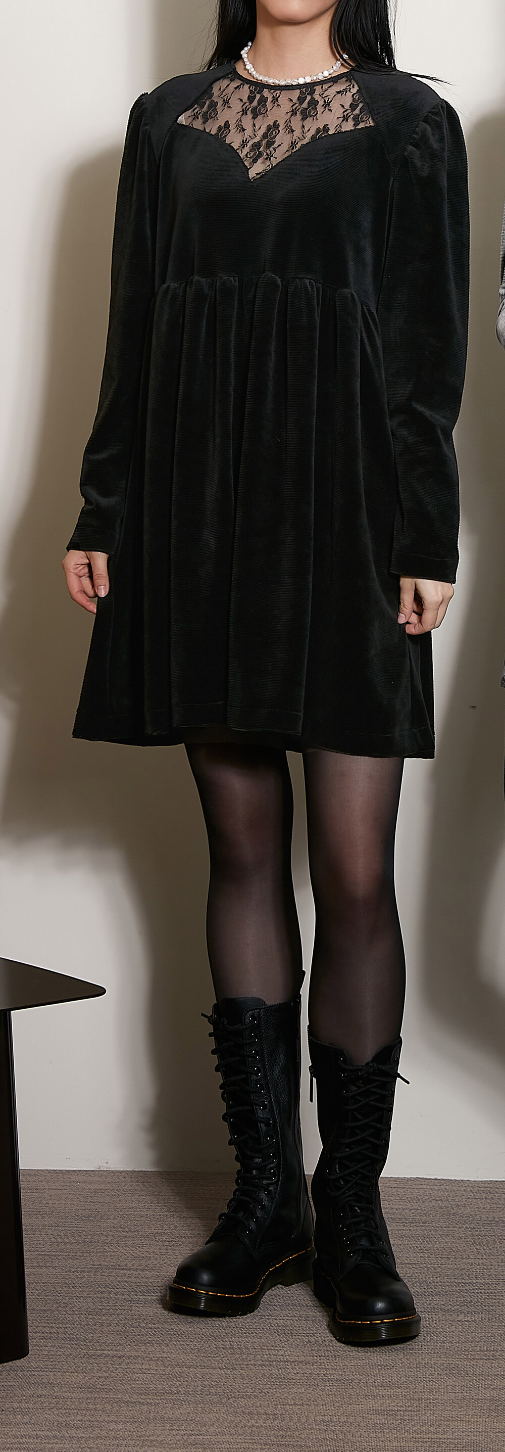 빈티지한 무드가 돋보이는 베이비돌 실루엣의 원피스.
