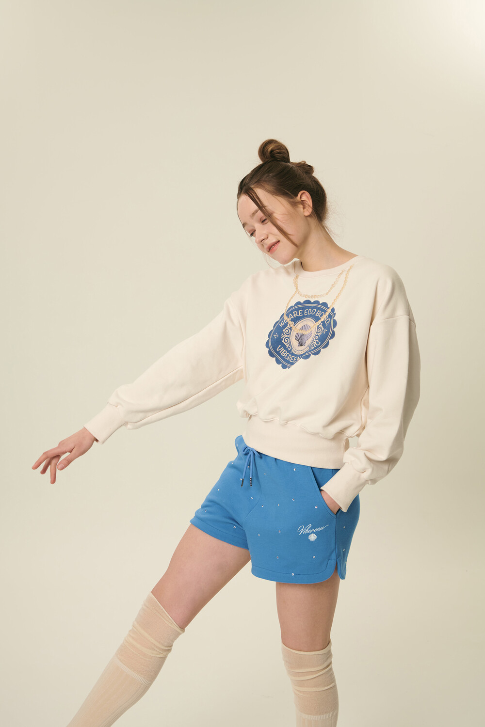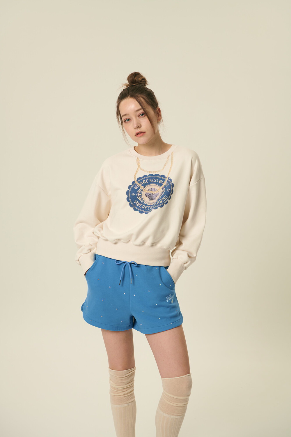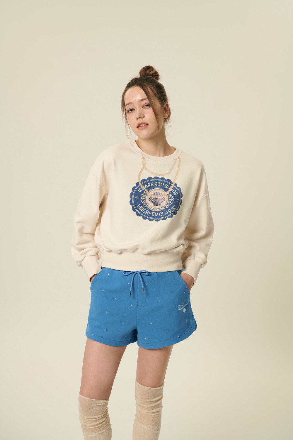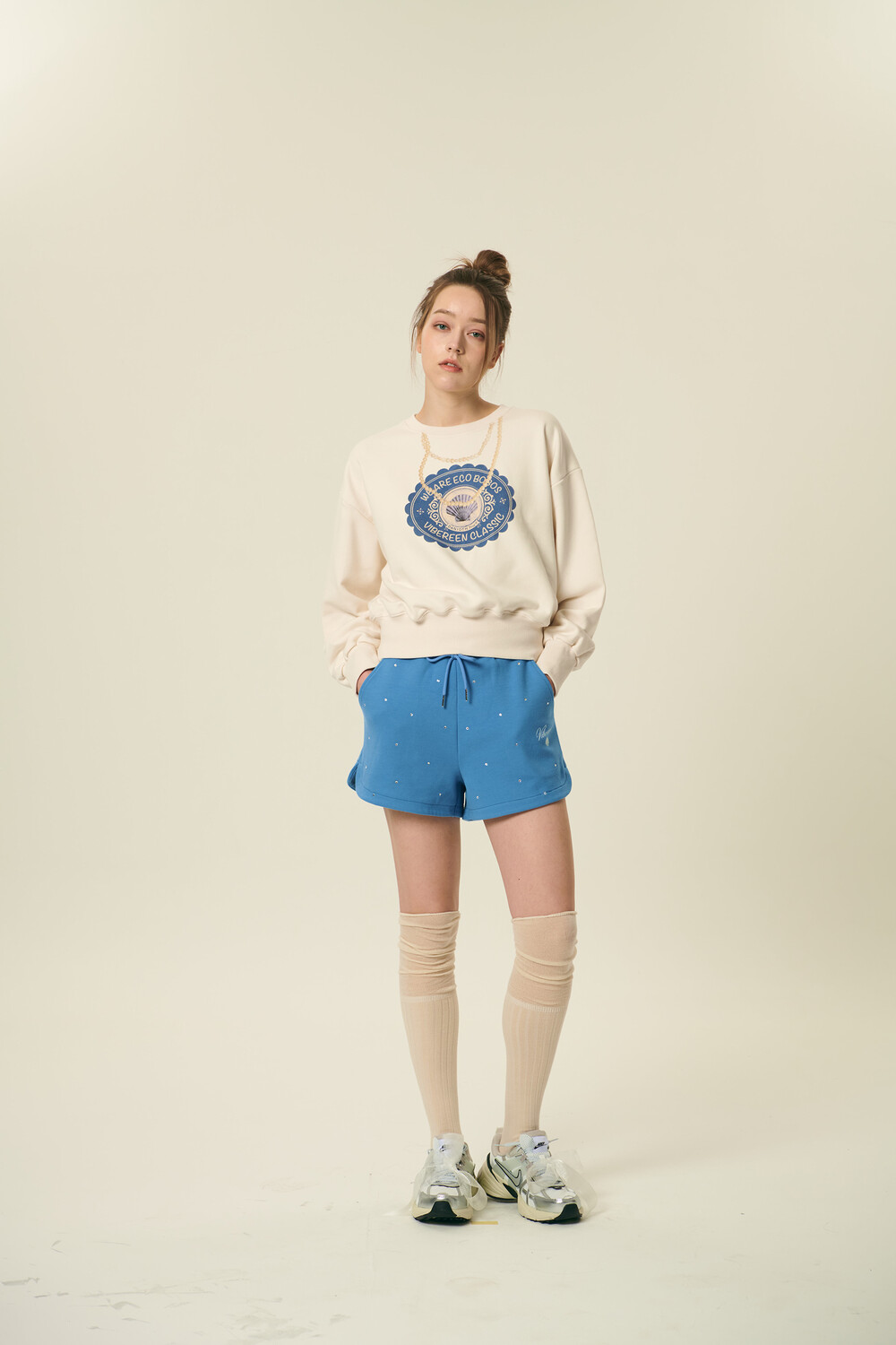 바깥쪽 라인을 더 짧게 하여, 다리가 길어보이게 설계 했습니다. 전면, 후면 빛나는 핫픽스를 뿌려 반짝반짝한 쇼츠 입니다.