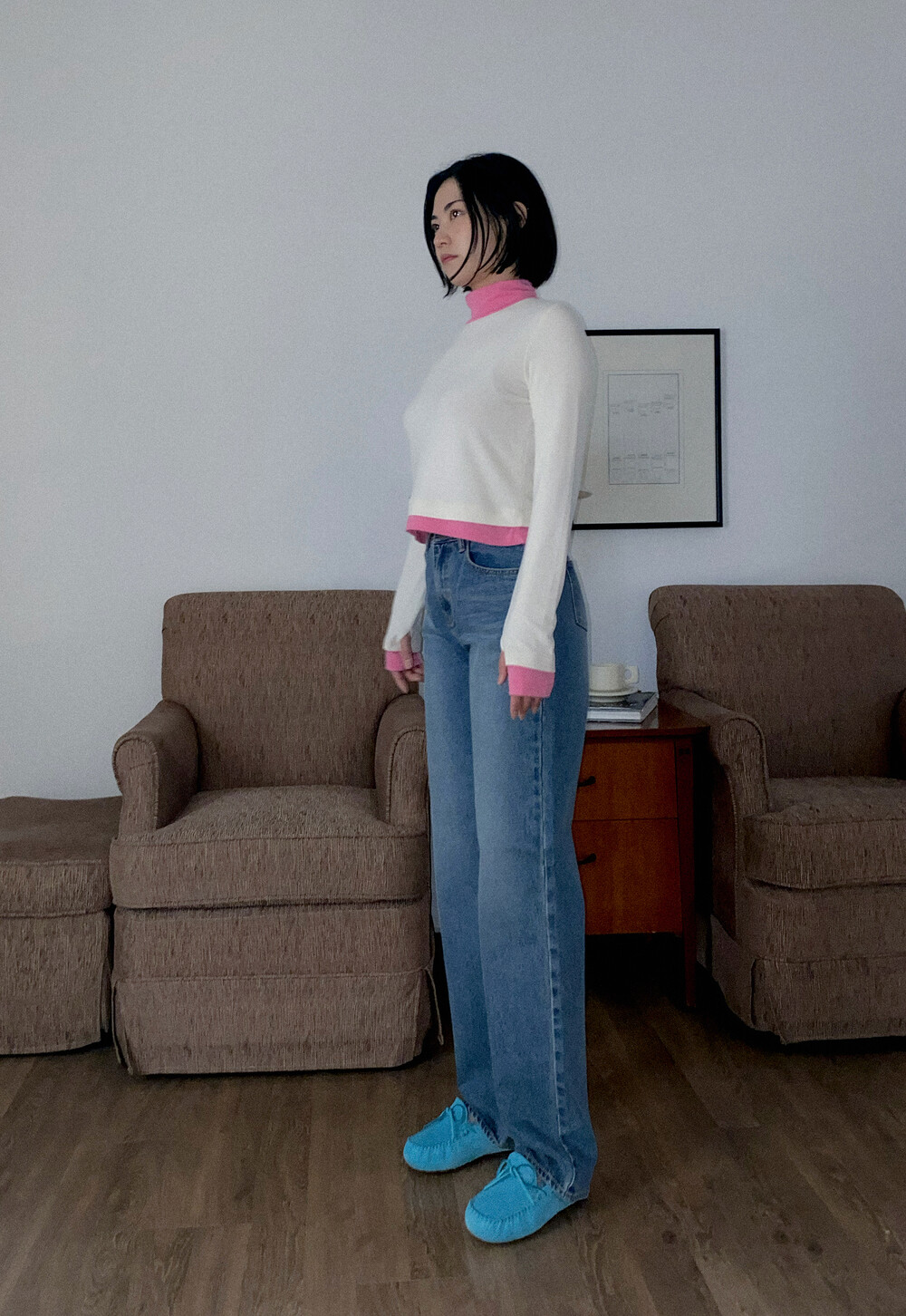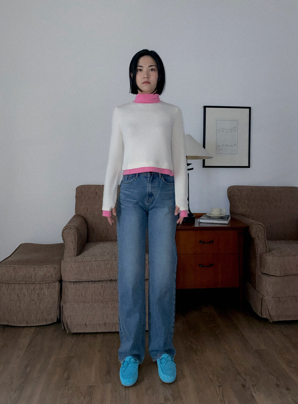 <V. Kate color stitch MTM 과 레이어드 하였습니다.>