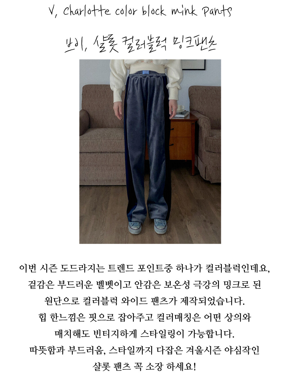 <겉감은 부드러운 골지 벨벳, 안감은 따뜻한 밍크로 제작되었습니다>