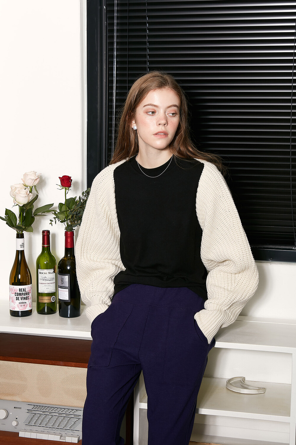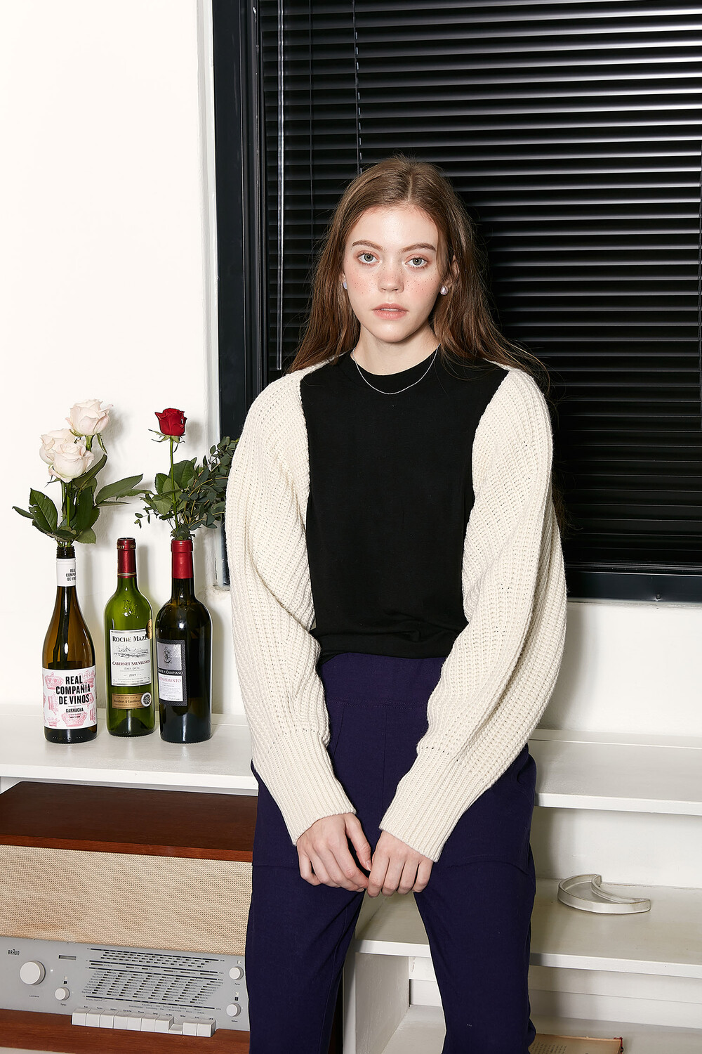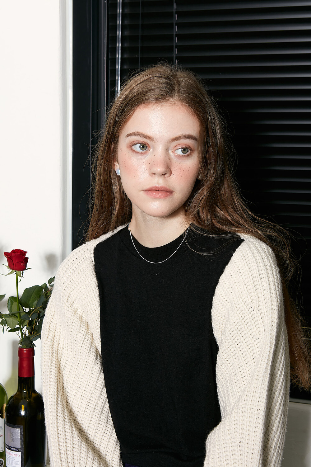 텐셀과 울 함유가 된 터틀 티셔츠는 보통 얇아서 다루기 힘들고, 그로 인해 바디 실루엣이 드러나 불편한 제품이