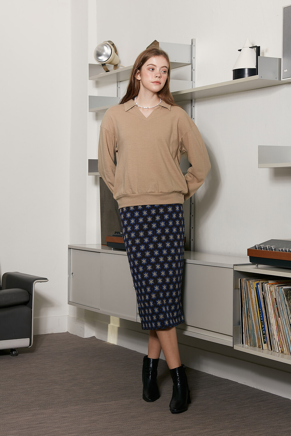 가슴골이 보이지 않을 정도지만 답답하지 않은 브이넥 라인입니다.