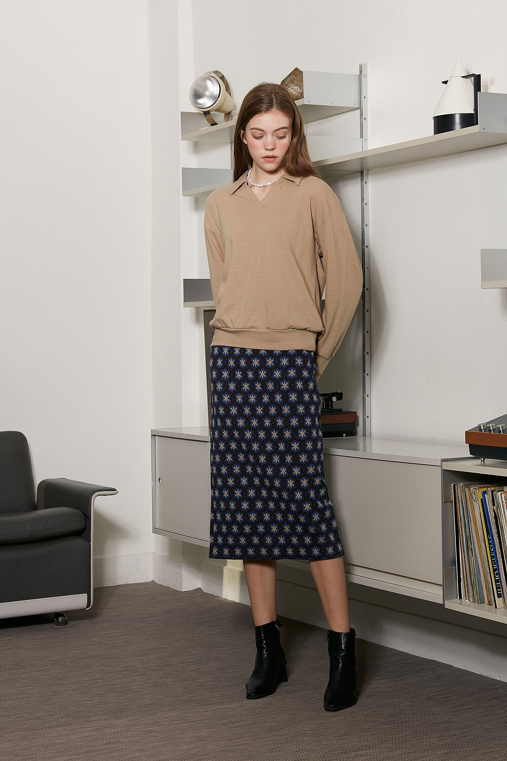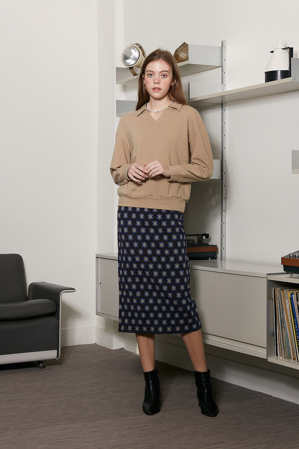 드랍되는 어깨라인과 감각적으로 파인 딥한 브이넥 라인의 카라티로 밑단은 텐션감 없이 잡아주어