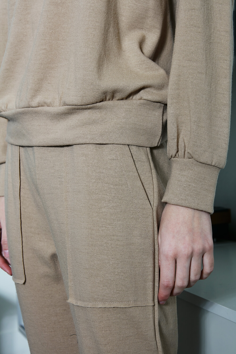 바이브린의 바지락 카라티 & 팬츠의 소재는 18.5 마이크로 배털로 최상급 Fine wool 100% 로 편직하였습니다.
