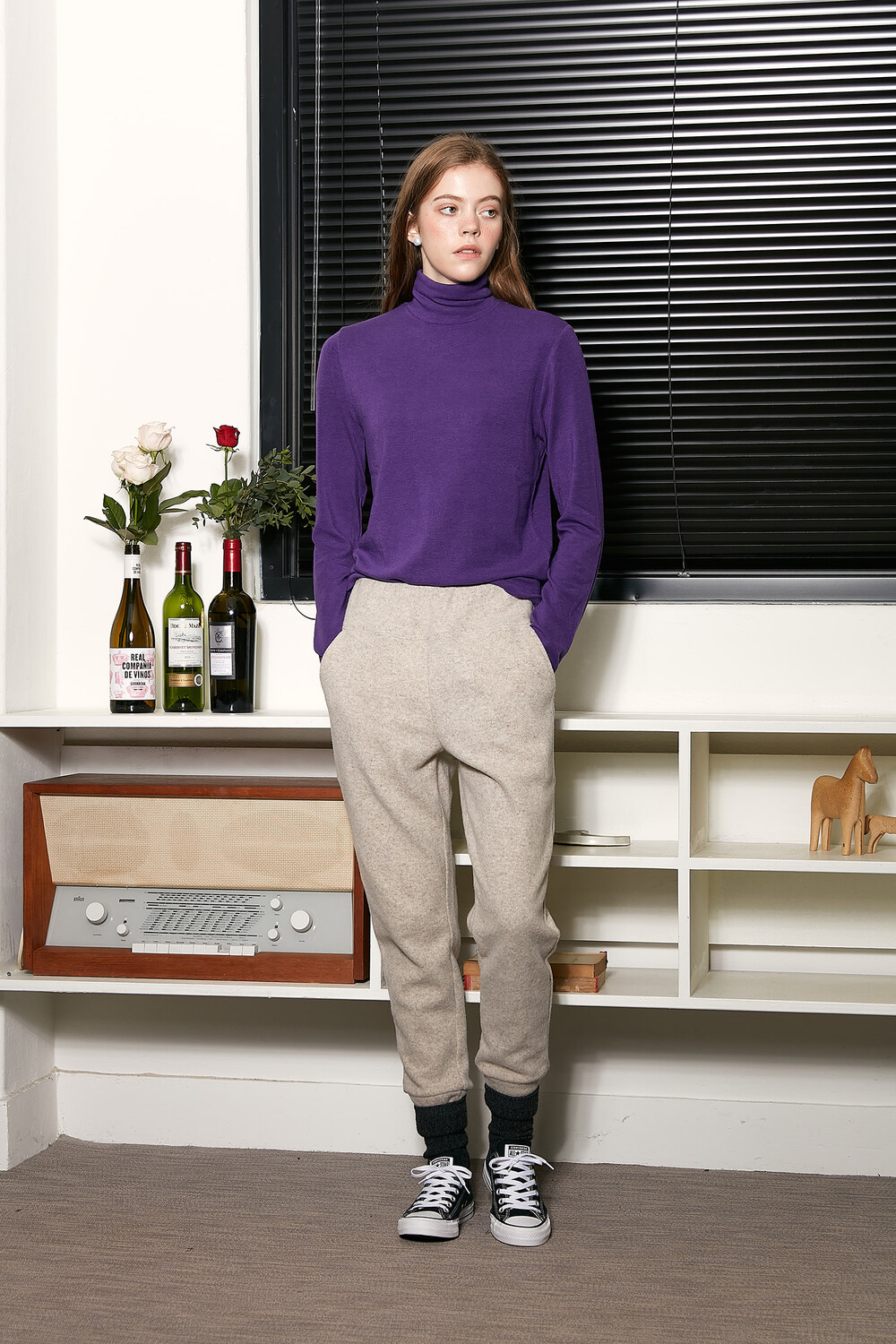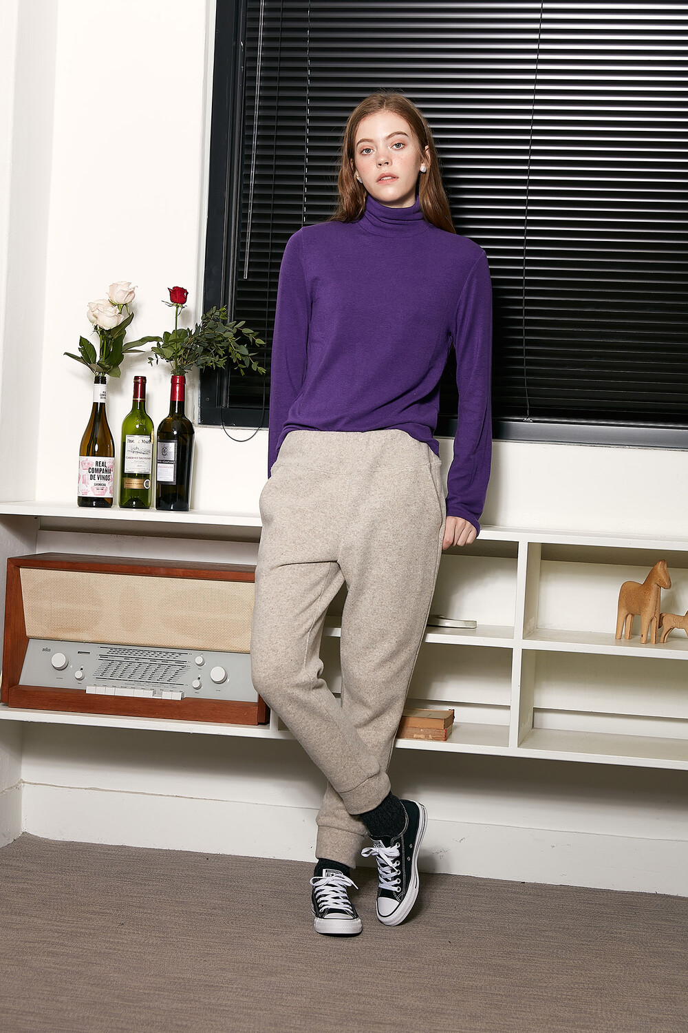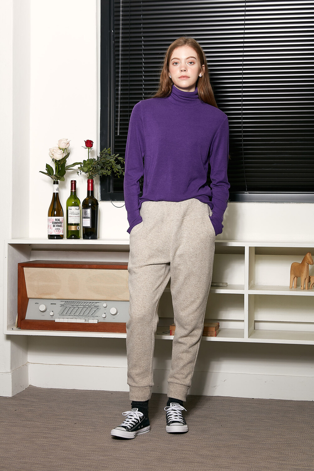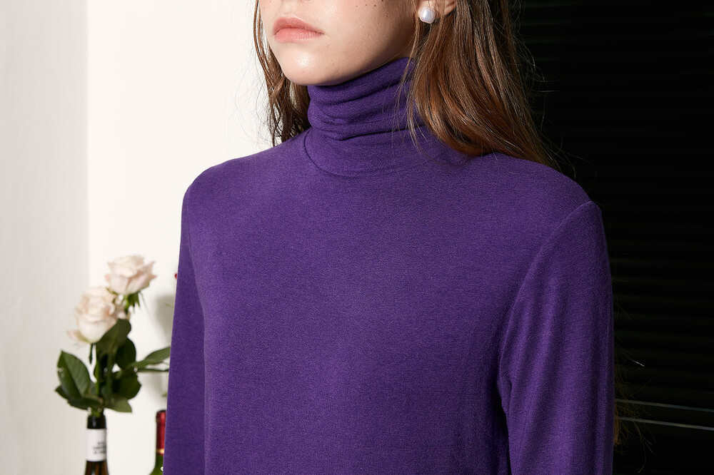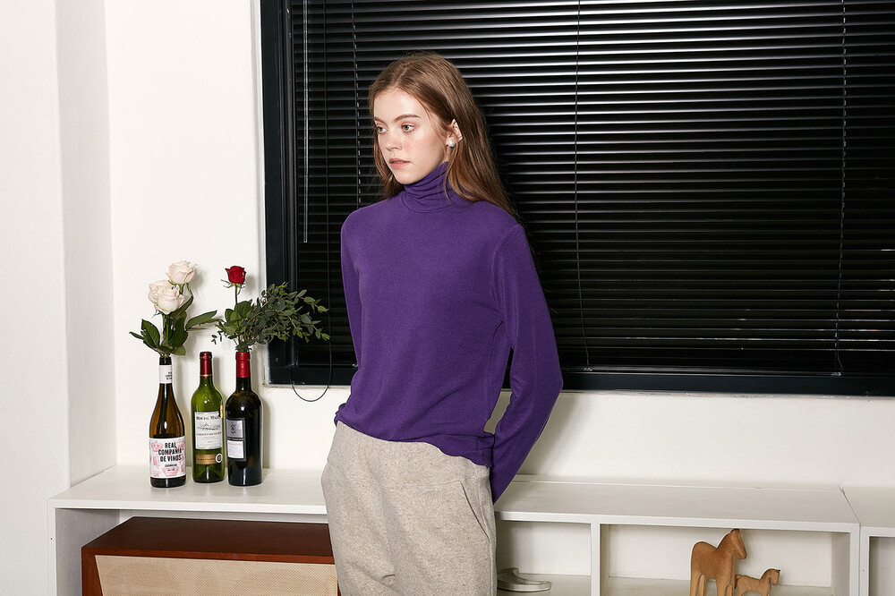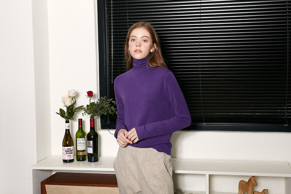 텐셀과 울 함유가 된 터틀 티셔츠는 보통 얇아서 다루기 힘들고, 그로 인해 바디 실루엣이 드러나 불편한 제품이