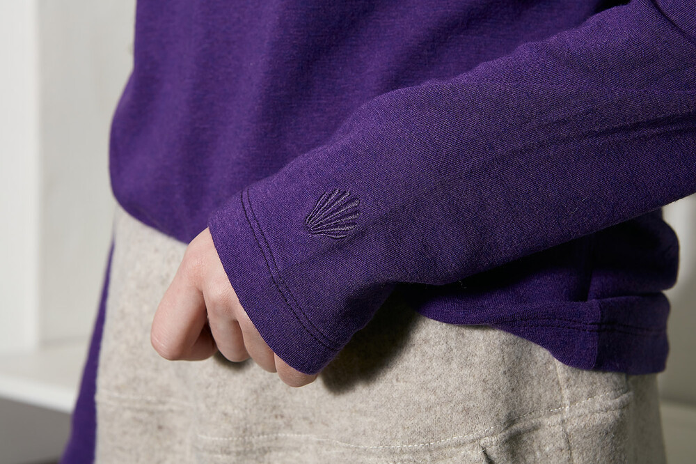 왼쪽 소매에 조개 자수를 넣어 포인트를 주었습니다. 바디컬러와 은은하게 매치하여